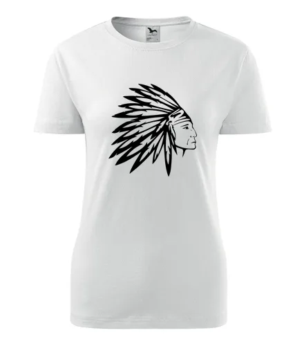 Dámské tričko indián. Nabízené velikosti jsou XS, S, M, L, XL, XXL. Výběr z 9 barev. Tričko patří do kategorií . Technologie potisku: Tisk na tričko je realizován pomocí termolisu a potisk je velice trvanlivý.