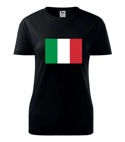 Černé dámské tričko s italskou vlajkou. Nabízené velikosti jsou XS, S, M, L, XL, XXL. Výběr z 9 barev. Tričko patří do kategorií Trička s vlajkou dámská. Technologie potisku: Tisk na tričko je realizován pomocí přímého digitální tisku na textil.
