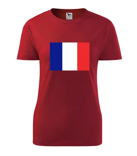 Červené dámské tričko s francouzskou vlajkou. Nabízené velikosti jsou XS, S, M, L, XL, XXL. Výběr z 9 barev. Tričko patří do kategorií Trička s vlajkou dámská. Technologie potisku: Tisk na tričko je realizován pomocí přímého digitální tisku na textil.