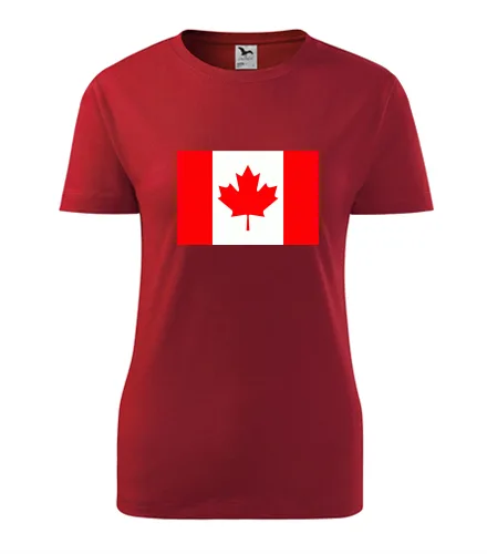 Červené dámské tričko s kanadskou vlajkou. Nabízené velikosti jsou XS, S, M, L, XL, XXL. Výběr z 9 barev. Tričko patří do kategorií Trička s vlajkou dámská. Technologie potisku: Tisk na tričko je realizován pomocí přímého digitální tisku na textil.