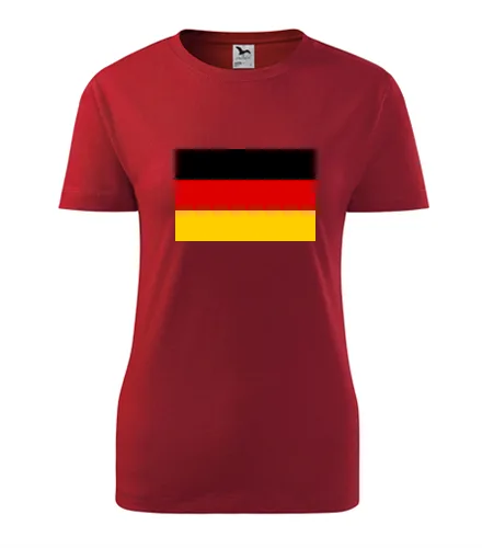 Červené dámské tričko s německou vlajkou. Nabízené velikosti jsou XS, S, M, L, XL, XXL. Výběr z 9 barev. Tričko patří do kategorií Trička s vlajkou dámská. Technologie potisku: Tisk na tričko je realizován pomocí přímého digitální tisku na textil.