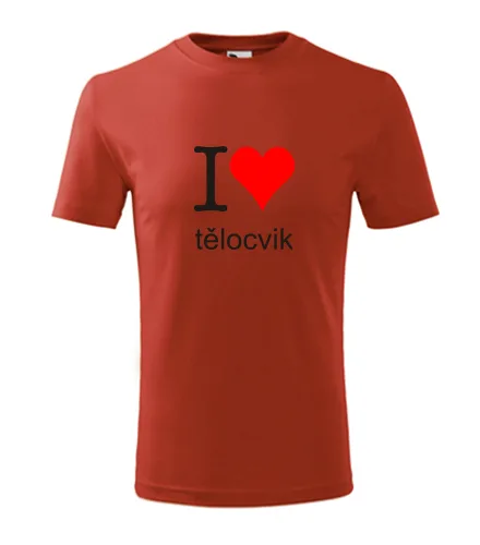 Červené dětské tričko I love tělocvi. Nabízené velikosti jsou 4 roky, 6 let, 8 let, 10 let, 12 let. Výběr z 13ti barev. Tričko patří do kategorií Dětská školní trička. Technologie potisku: Tisk na tričko je realizován pomocí termolisu a potisk je velice trvanlivý.