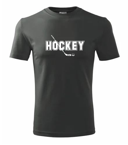 Grafitové tričko s nápisem Hockey. Nabízené velikosti jsou S, M, L, XL, XXL, XXXL. Výběr z 12 barev. Tričko patří do kategorií . Technologie potisku: Tisk na tričko je realizován pomocí termolisu a potisk je velice trvanlivý.