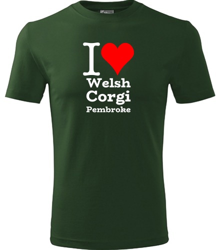 Lahvově zelené tričko I love Welsh Corgi Pembroke