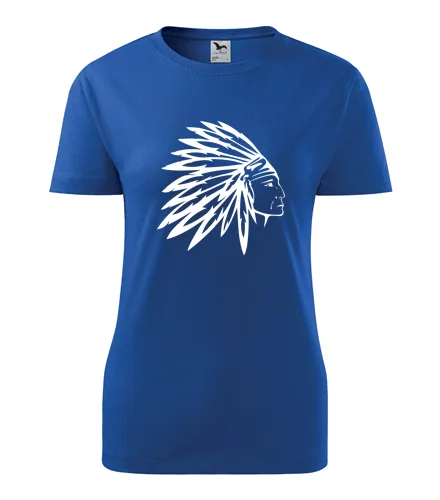 Modré dámské tričko indián. Nabízené velikosti jsou XS, S, M, L, XL, XXL. Výběr z 9 barev. Tričko patří do kategorií . Technologie potisku: Tisk na tričko je realizován pomocí termolisu a potisk je velice trvanlivý.