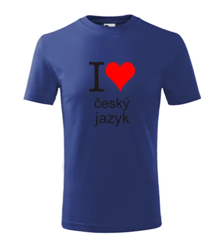Modré dětské tričko I love český jazy. Nabízené velikosti jsou 4 roky, 6 let, 8 let, 10 let, 12 let. Výběr z 13ti barev. Tričko patří do kategorií Dětská školní trička. Technologie potisku: Tisk na tričko je realizován pomocí termolisu a potisk je velice trvanlivý.