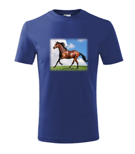 Modré dětské tričko s koněm . Nabízené velikosti jsou 4 roky, 6 let, 8 let, 10 let, 12 let. Výběr z 13ti barev. Tričko patří do kategorií Trička se zvířaty dětská, Dětská trička s koňmi. Technologie potisku: Tisk na tričko je realizován pomocí přímého digitální tisku na textil.