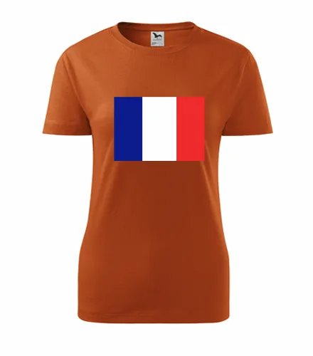 Oranžové dámské tričko s francouzskou vlajkou. Nabízené velikosti jsou XS, S, M, L, XL, XXL. Výběr z 9 barev. Tričko patří do kategorií Trička s vlajkou dámská. Technologie potisku: Tisk na tričko je realizován pomocí přímého digitální tisku na textil.