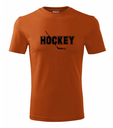 Oranžové tričko s nápisem Hockey. Nabízené velikosti jsou S, M, L, XL, XXL, XXXL. Výběr z 12 barev. Tričko patří do kategorií . Technologie potisku: Tisk na tričko je realizován pomocí termolisu a potisk je velice trvanlivý.