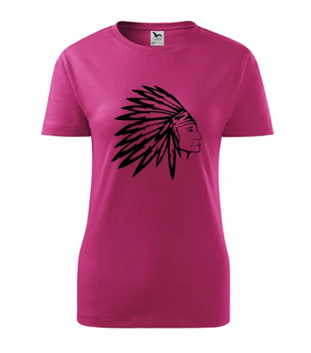 Purpurové dámské tričko indián. Nabízené velikosti jsou XS, S, M, L, XL, XXL. Výběr z 9 barev. Tričko patří do kategorií . Technologie potisku: Tisk na tričko je realizován pomocí termolisu a potisk je velice trvanlivý.