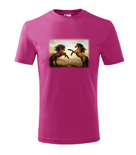 Purpurové dětské tričko s koňmi . Nabízené velikosti jsou 4 roky, 6 let, 8 let, 10 let, 12 let. Výběr z 13ti barev. Tričko patří do kategorií Trička se zvířaty dětská, Dětská trička s koňmi. Technologie potisku: Tisk na tričko je realizován pomocí přímého digitální tisku na textil.