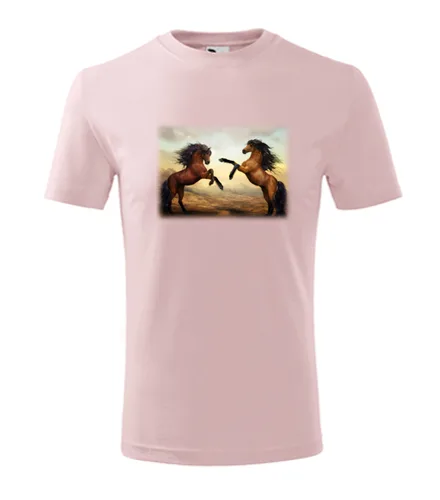 Růžové dětské tričko s koňmi . Nabízené velikosti jsou 4 roky, 6 let, 8 let, 10 let, 12 let. Výběr z 13ti barev. Tričko patří do kategorií Trička se zvířaty dětská, Dětská trička s koňmi. Technologie potisku: Tisk na tričko je realizován pomocí přímého digitální tisku na textil.
