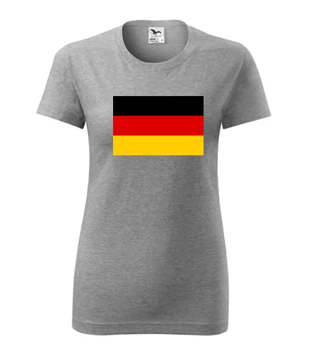 Šedé dámské tričko s německou vlajkou. Nabízené velikosti jsou XS, S, M, L, XL, XXL. Výběr z 9 barev. Tričko patří do kategorií Trička s vlajkou dámská. Technologie potisku: Tisk na tričko je realizován pomocí přímého digitální tisku na textil.