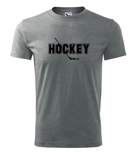 Šedé tričko s nápisem Hockey. Nabízené velikosti jsou S, M, L, XL, XXL, XXXL. Výběr z 12 barev. Tričko patří do kategorií . Technologie potisku: Tisk na tričko je realizován pomocí termolisu a potisk je velice trvanlivý.