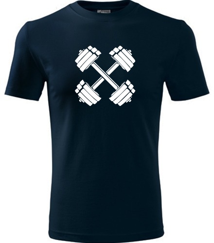 Home >> Trička dle profesí pánská >> Dárek pro trenéra >> Tmavě modré tričko s činkami - dárek pro cvičence co chodí do posilovny