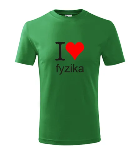 Zelené dětské tričko I love fyzika. Nabízené velikosti jsou 4 roky, 6 let, 8 let, 10 let, 12 let. Výběr z 13ti barev. Tričko patří do kategorií Dětská školní trička. Technologie potisku: Tisk na tričko je realizován pomocí termolisu a potisk je velice trvanlivý.