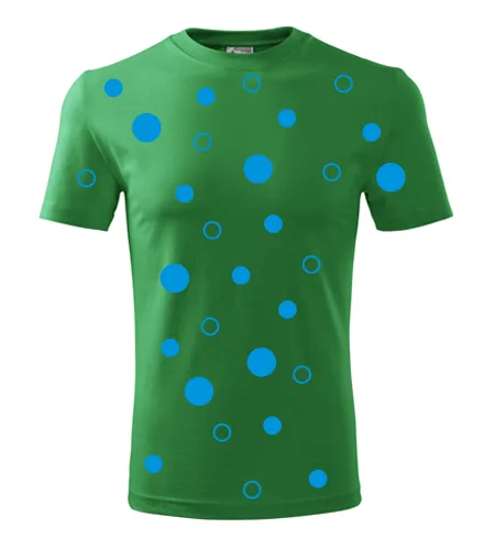 Zelené tričko s modrými kuličkami. Nabízené velikosti jsou S, M, L, XL, XXL, XXXL. Výběr z 12 barev. Tričko patří do kategorií Trička s puntíky. Technologie potisku: Tisk na tričko je realizován pomocí termolisu a potisk je velice trvanlivý.