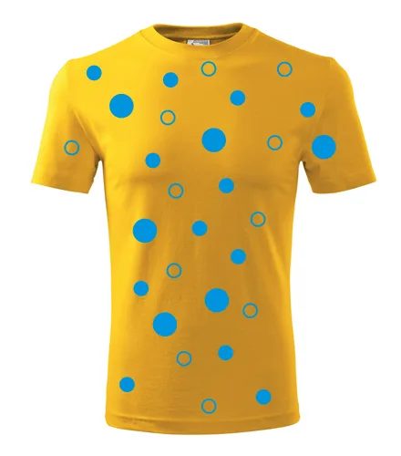 Žluté tričko s modrými kuličkami. Nabízené velikosti jsou S, M, L, XL, XXL, XXXL. Výběr z 12 barev. Tričko patří do kategorií Trička s puntíky. Technologie potisku: Tisk na tričko je realizován pomocí termolisu a potisk je velice trvanlivý.