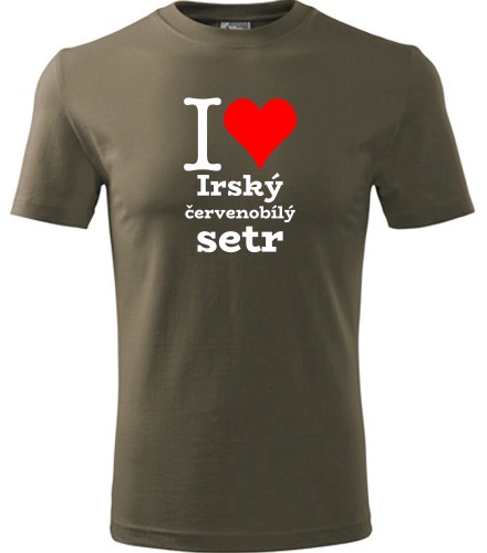 Khaki tričko I love Irský červenobílý setr