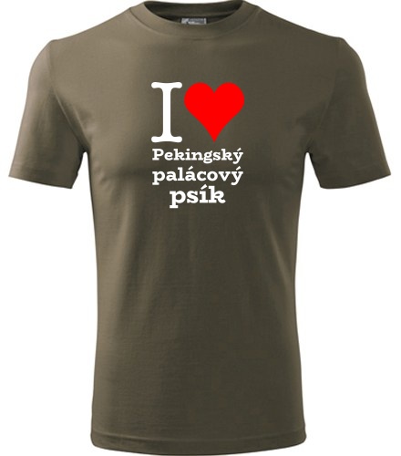 Khaki tričko I love Pekingský palácový psík