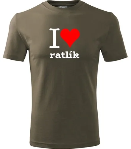 Dárek pro pejskaře. Army tričko I love ratlík. Nabízené velikosti jsou S, M, L, XL, XXL, XXXL. Tričko patří do kategorií Dárek pro pejskaře. Technologie potisku: Tisk na tričko je realizován pomocí termolisu a potisk je velice trvanlivý.