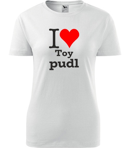 Home >> Trička >> Dárek pro pejskařku >> Bílé dámské tričko I love Toy pudl - dárek pro pejskařku