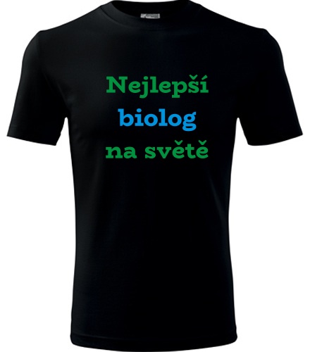 Dárek pro biologa. Černé tričko nejlepší biolog na světě. nabízené velikosti jsou S,M,L,XL,XXL,XXXL. Výběr z 12ti barev. Tričko patří do kategorií Dárek pro biologa, . Technologie potisku: Tisk na tričko je realizován pomocí termolisu a potisk je velice trvanlivý.