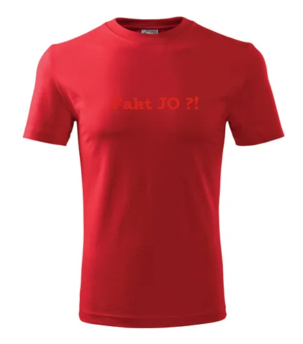 Červené tričko Fakt JO ?!. Nabízené velikosti jsou S, M, L, XL, XXL, XXXL. Výběr z 12 barev. Tričko patří do kategorií Trička s hláškou pánská. Technologie potisku: Tisk na tričko je realizován pomocí termolisu a potisk je velice trvanlivý.