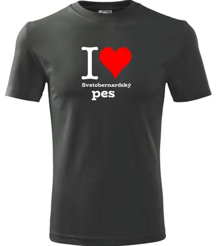 Dárek pro pejskaře. Grafitové tričko I love Svatobernardský pes. Nabízené velikosti jsou S, M, L, XL, XXL, XXXL. Tričko patří do kategorií Dárek pro pejskaře. Technologie potisku: Tisk na tričko je realizován pomocí termolisu a potisk je velice trvanlivý.