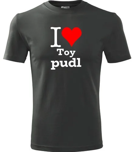 Dárek pro pejskaře. Grafitové tričko I love Toy pudl. Nabízené velikosti jsou S, M, L, XL, XXL, XXXL. Tričko patří do kategorií Dárek pro pejskaře. Technologie potisku: Tisk na tričko je realizován pomocí termolisu a potisk je velice trvanlivý.