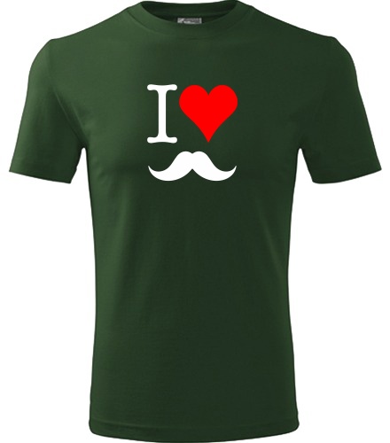 Lahvově zelené tričko I love kníry, tričko s potiskem, tričko lahvově zelená, tričko Panske, velikosti S,M,L,XL,XXL,XXXL...