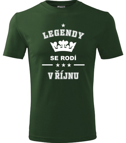 Lahvově zelené tričko Legendy se rodí v říjnu