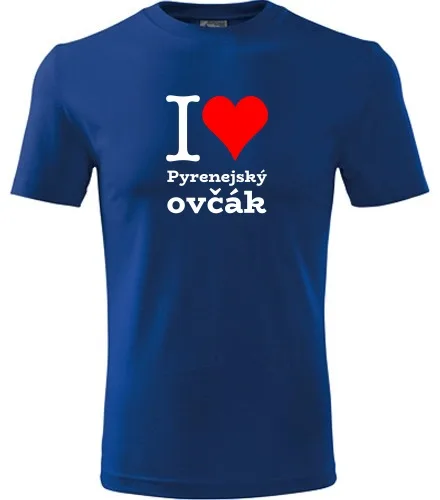 Dárek pro pejskaře. Modré tričko I love Pyrenejský ovčák. Nabízené velikosti jsou S, M, L, XL, XXL, XXXL. Tričko patří do kategorií Dárek pro pejskaře. Technologie potisku: Tisk na tričko je realizován pomocí termolisu a potisk je velice trvanlivý.