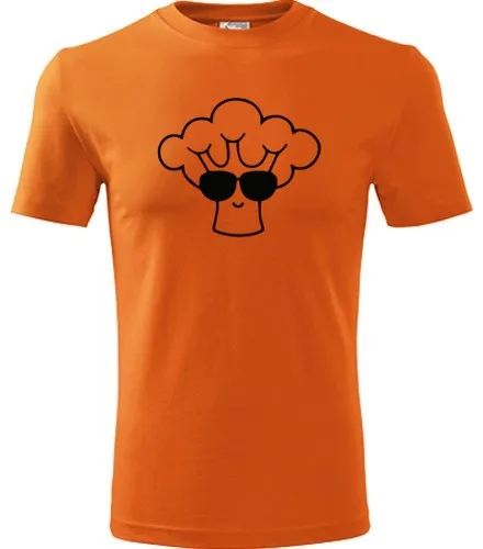 Dárky pro vegetariána. Oranžové tričko s brokolicí. Nabízené velikosti jsou S, M, L, XL, XXL, XXXL. Tričko patří do kategorií . Technologie potisku: Tisk na tričko je realizován pomocí termolisu a potisk je velice trvanlivý.