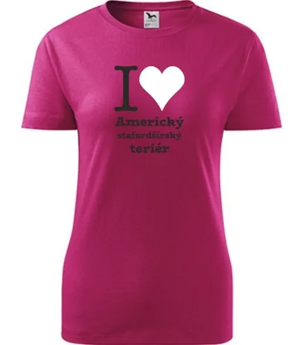 Purpurové dámské tričko I love Americký stafordšírský teriér