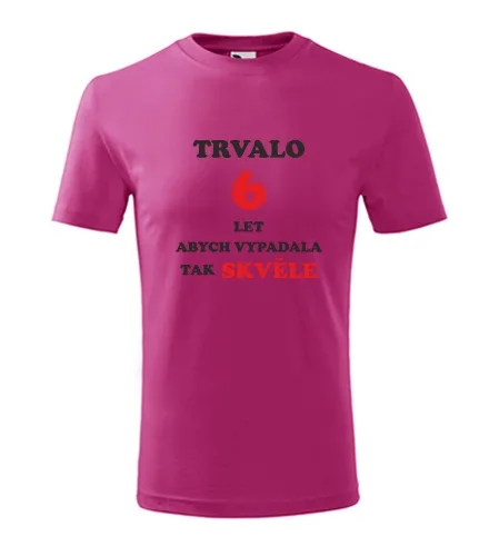 Dárek pro 6 letou holčičku. Purpurové dětské tričko trvalo 6 let. Nabízené velikosti jsou 4 roky, 6 let, 8 let, 10 let, 12 let. Výběr z 13ti barev. Tričko patří do kategorií . Technologie potisku: Tisk na tričko je realizován pomocí termolisu a potisk je velice trvanlivý.