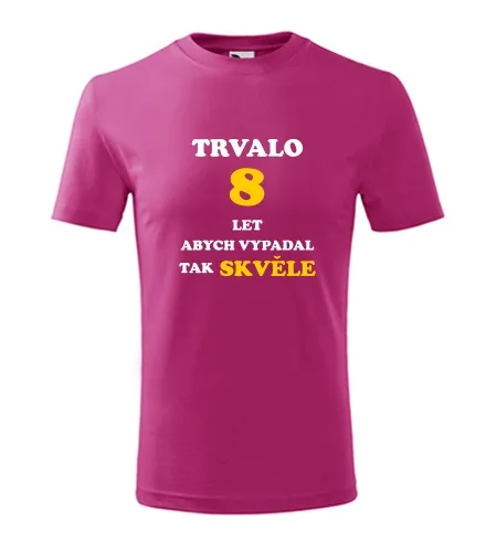 Dárky k 8 narozeninám pro vnuka. Purpurové dětské tričko trvalo 8 let. Nabízené velikosti jsou 4 roky, 6 let, 8 let, 10 let, 12 let. Výběr z 13ti barev. Tričko patří do kategorií . Technologie potisku: Tisk na tričko je realizován pomocí termolisu a potisk je velice trvanlivý.