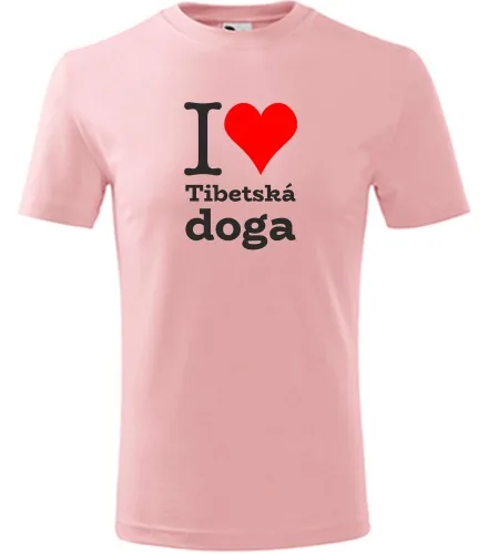 Dárek pro malého pejskaře / pejskařku. Růžové dětské tričko I love Tibetská doga. Nabízené velikosti jsou 4roky,6let,8let,10let,12let. Tričko patří do kategorií Dárek pro malého pejskaře / pejskařku. Technologie potisku: Tisk na tričko je realizován pomocí termolisu a potisk je velice trvanlivý.