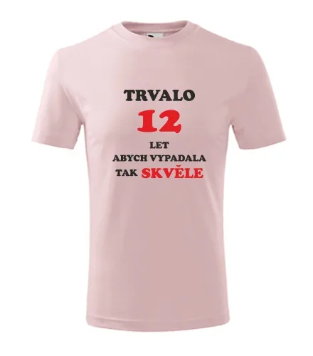 Dárky pro dívku 12 let. Růžové dětské tričko trvalo 12 let. Nabízené velikosti jsou 4 roky, 6 let, 8 let, 10 let, 12 let. Výběr z 13ti barev. Tričko patří do kategorií . Technologie potisku: Tisk na tričko je realizován pomocí termolisu a potisk je velice trvanlivý.