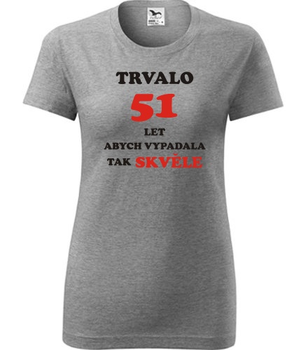 Home >> Trička dle jubilea dámská >> Dárek pro ženu k 51 >> Šedé dámské tričko trvalo 51 let - dárek k 51 narozeninám pro babičku