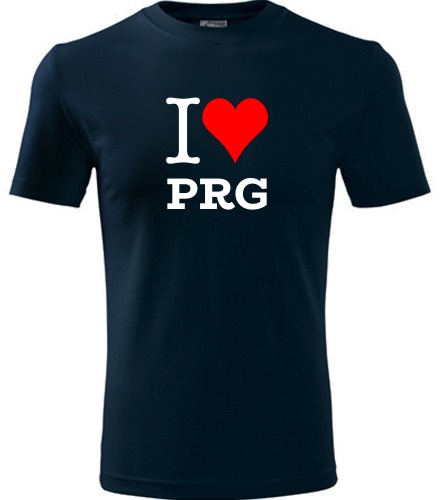 Tmavě modré tričko I love PRG, tričko s potiskem, tričko tmavě modrá, tričko Panske, velikosti S,M,L,XL,XXL,XXXL...