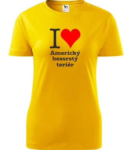 Žluté dámské tričko I love Americký bezsrstý teriér