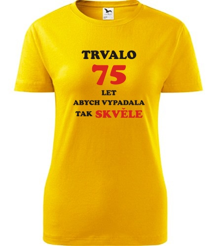 Home >> Trička dle jubilea dámská >> Dárek pro ženu k 75 >> Žluté dámské tričko trvalo 75 let - dárek k 75 narozeninám pro sestru