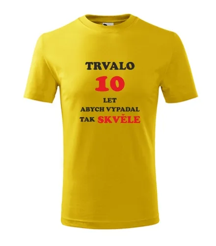 Dárek k 10 narozeninám. Žluté dětské tričko trvalo 10 let. Nabízené velikosti jsou 4 roky, 6 let, 8 let, 10 let, 12 let. Výběr z 13ti barev. Tričko patří do kategorií . Technologie potisku: Tisk na tričko je realizován pomocí termolisu a potisk je velice trvanlivý.