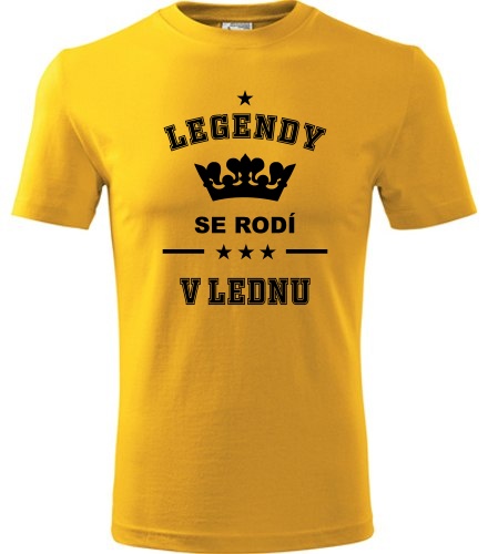 Žluté tričko Legendy se rodí v lednu, tričko s potiskem, tričko žlutá, tričko Panske, velikosti S,M,L,XL,XXL,XXXL...