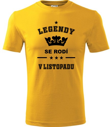 Žluté tričko Legendy se rodí v listopadu, tričko s potiskem, tričko žlutá, tričko Panske, velikosti S,M,L,XL,XXL,XXXL...